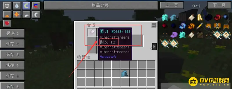1、先找到附魔台,以附魔了耐久3的剪刀为例,先将其放入工作台中。