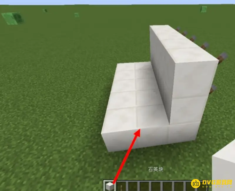 1.在建筑方块中随便选一种方块,做一个3层高,5个长的墙