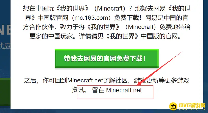 2、点击留在 Minecraft.net;