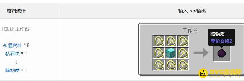 3.材料齐全后,将永恒燃料放到四周,把钻石块放到中间,这样就可以制作出暗物质。
