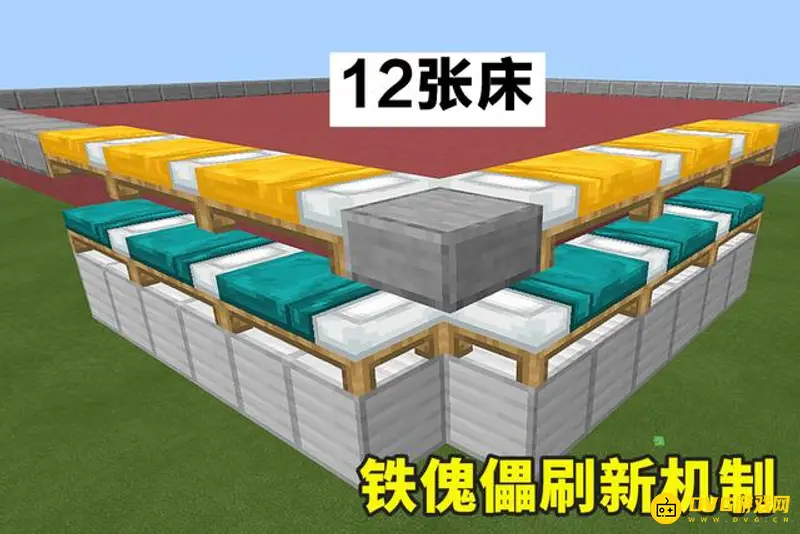 1、首先至少需要20张床以及10个村民才能触发铁傀儡的刷新条件。按照图片所示的结构摆放12张床,然后在对角线的位置如法炮制即可,如果你按照步骤执行,你应该放置了24张床。