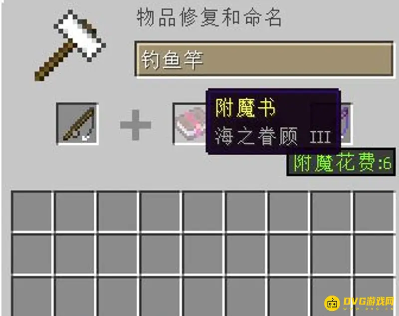 2、使用附魔“海之眷顾”的钓鱼竿在水源边钓鱼,钓到宝物的几率增加。
