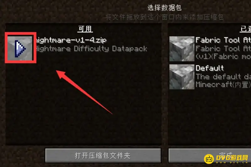 5、然后,游戏会自动弹出数据包的添加文件夹,我们将自己的数据包拖到该文件夹当中即可。