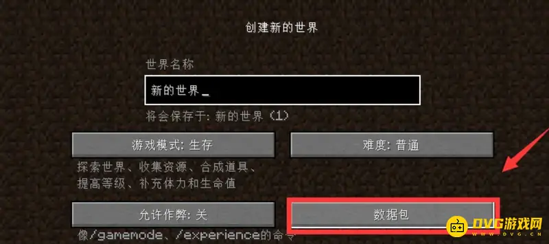 3、在世界创建界面中,我们需要点击“数据包”选项,进入数据包界面。