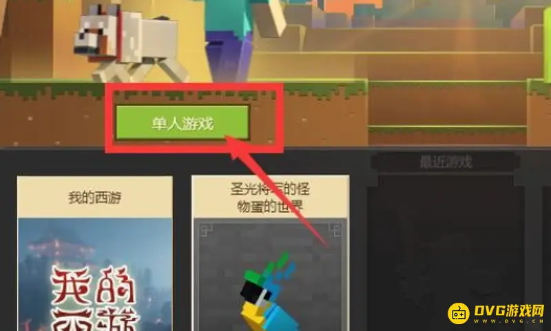 5.以上的是关于RPG类MOD的下载安装方法。然后我们继续看下关于素材的MOD。首先点击启动器右下角的“启动游戏”,进到模式选择界面。选择“单人模式”。如图示。