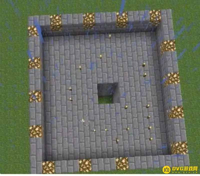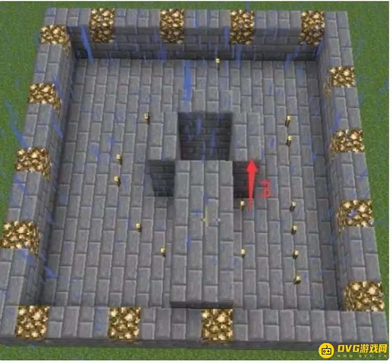 3、外围提高一格,并且每2格用一个萤石或者南瓜灯照明。
