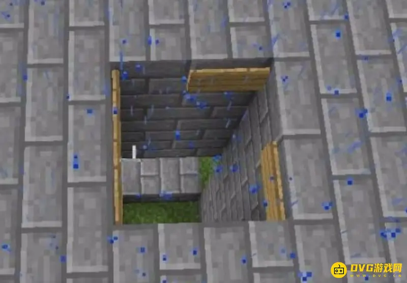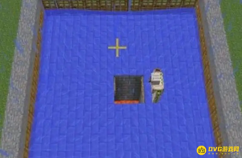 7、然后我们就可以沿着门的4个角倒水,水会流向中间位置,但不会流下去,被木牌挡住了。