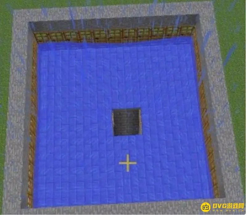 6、在中间的出口处,我们可以放置一圈木牌,用来阻挡水流下。