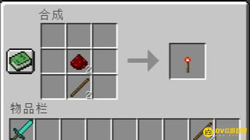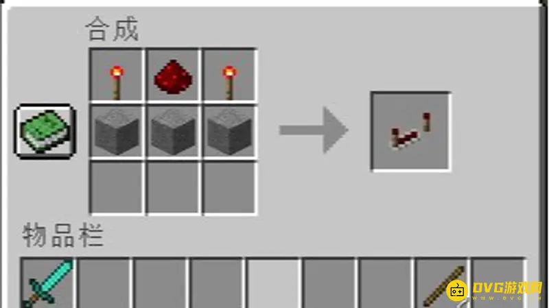 5、左右放红石火把,中间放红石,底下放一行石头,这样就能合成红石中继器。