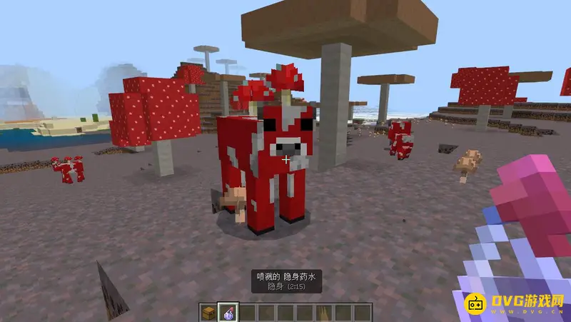 1,例如我们拿着隐身药水对着蘑菇牛进行喷溅。