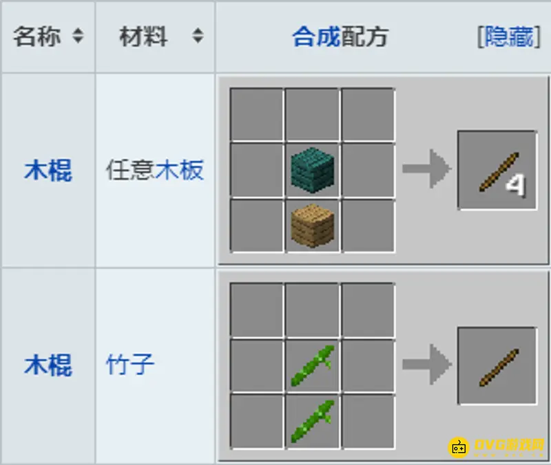 1.木棍(Stick)是一种能够合成很多工具和物品的物品。