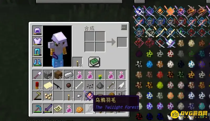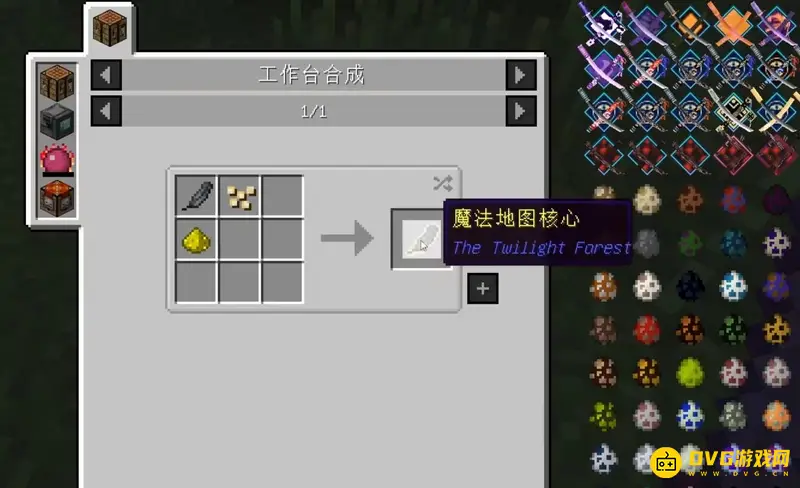 1、准备好乌鸦毛、火炬浆果和萤石粉制作魔法地图核心。