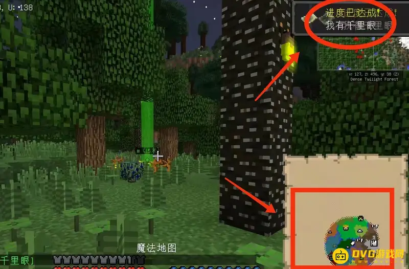 3、然后进入暮色森林拿出制作好的地图打开就是暮色地图了,还会获得成就“我有千里眼“。