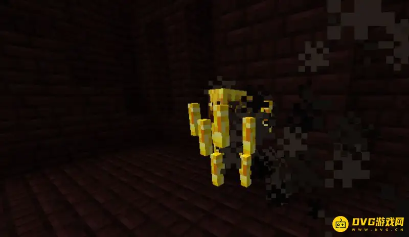3、玩家在下界堡垒找到烈焰人,拿出武器准星对准它,左键攻击。