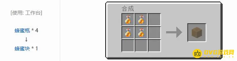 用四个蜂蜜瓶就可以合成获得蜂蜜块了。