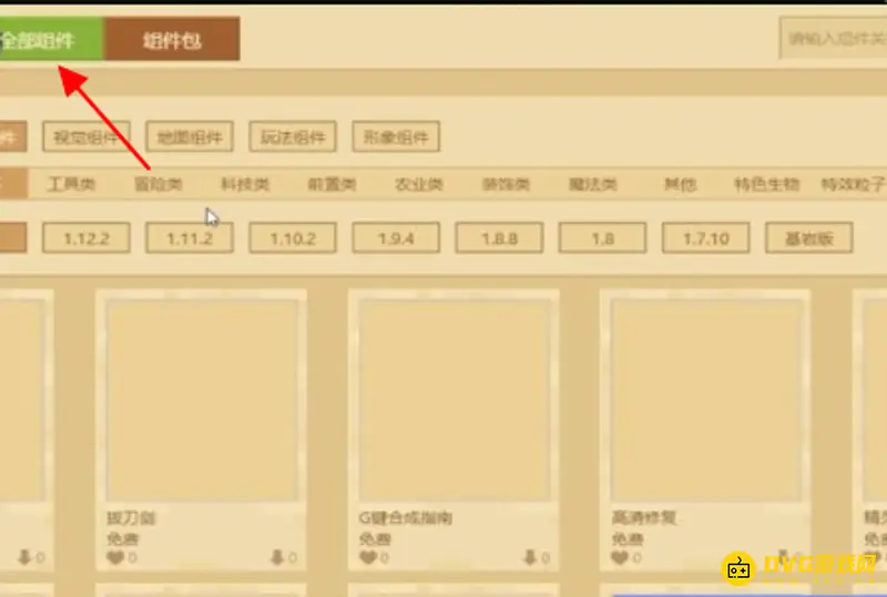3、点击页面上方的“全部组件”。