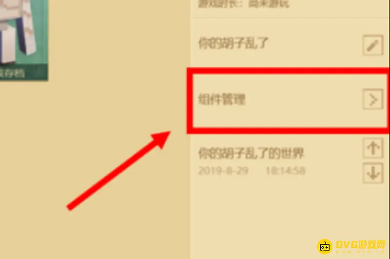 7、创建好后,点击刚才创建的世界,在右边的工具栏中点击组件管理。