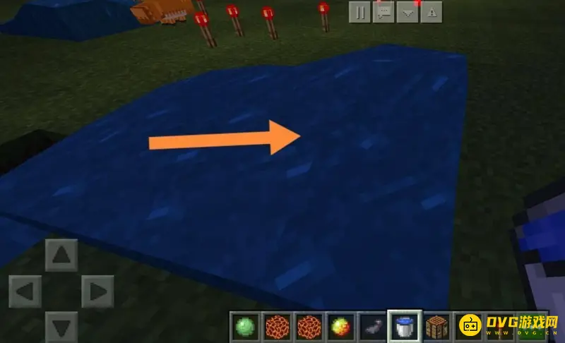 3、之后就会产生上升气泡柱。将岩浆块放在水下的时候就会生成上升气泡柱,掉落的物品碰到上升气泡柱后会一直上升到水面,可以用来运输物品。
