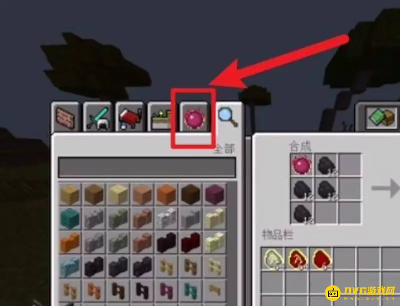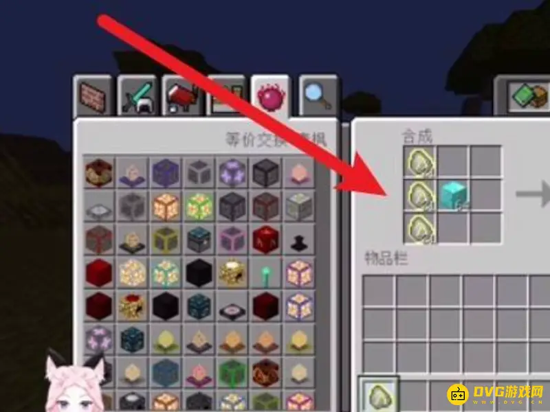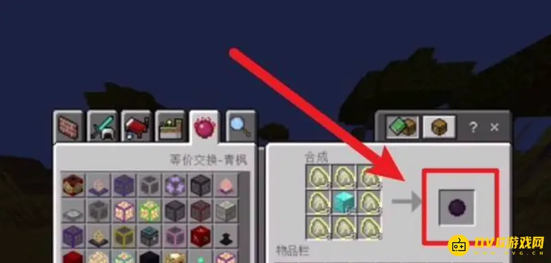 3、在下方物品栏选择8个永恒燃料和1个钻石块。