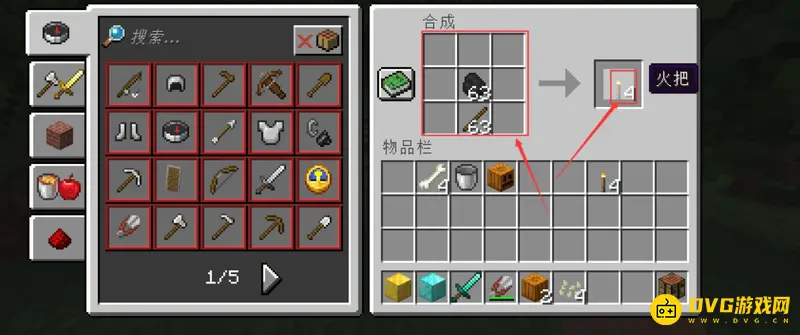 1.首先火把需要木棍跟煤炭来合成,如图所示。