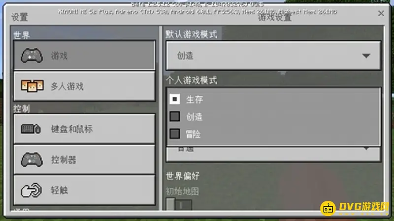 2、我们也可以按下返回键,在设置—游戏设置里,修改个人游戏模式来进行生存,创造,冒险模式切换。