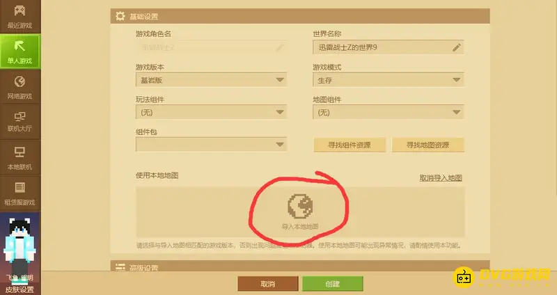 2,然后点击下方的导入本地地图,选择想装入的存档就可以了。