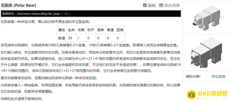 我的世界北极熊是不能被驯服的。