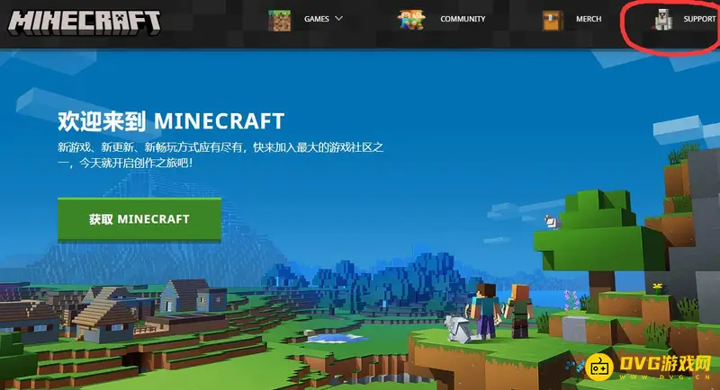 1,首先我们进入我的世界官网,点击右上角SUPPORT查看相关说明。