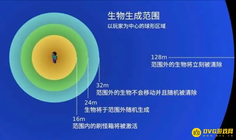 玩家为中心,半径128的球,且半径24以内不刷怪,128米以为立刻被清除。刷怪高度是24格以上,也就是在半径为24的球形范围之外,我的世界在刷怪的时候指的就是欧几里得。