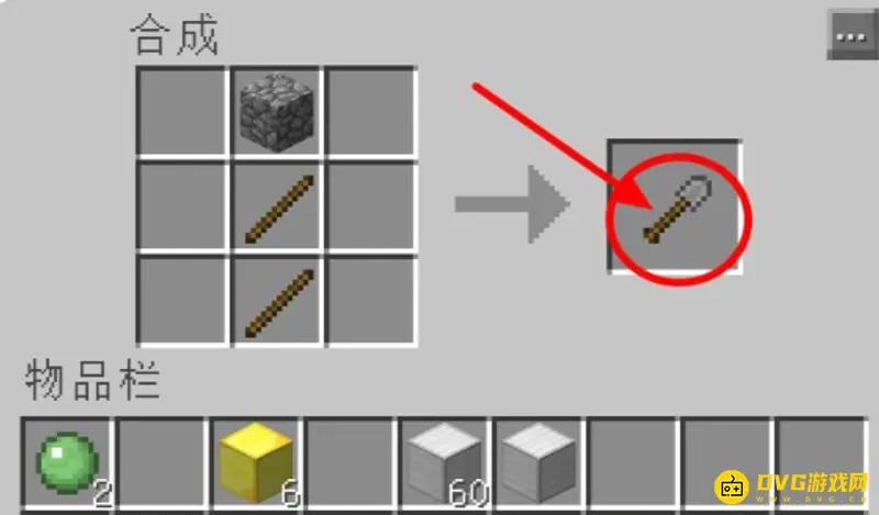 3、打开工作台,用一个圆石,两个木棍合成石铲。