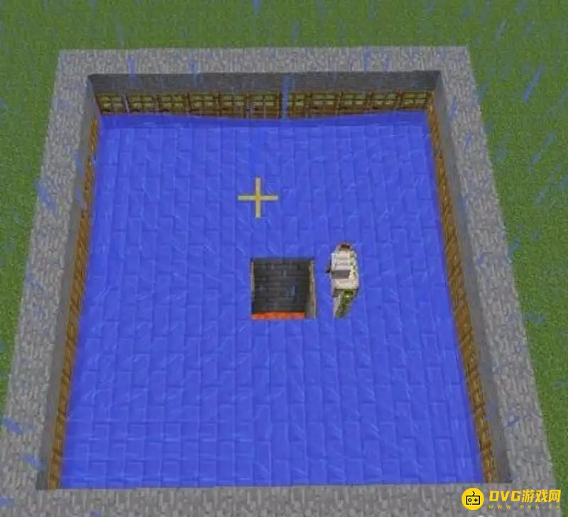 2.利用村民的生成机制,繁殖10个傀儡,因牢笼小而在上面,因上面是水所以会被冲入洞中,因洞中有岩浆所以会被融化从而生成刷铁机。
