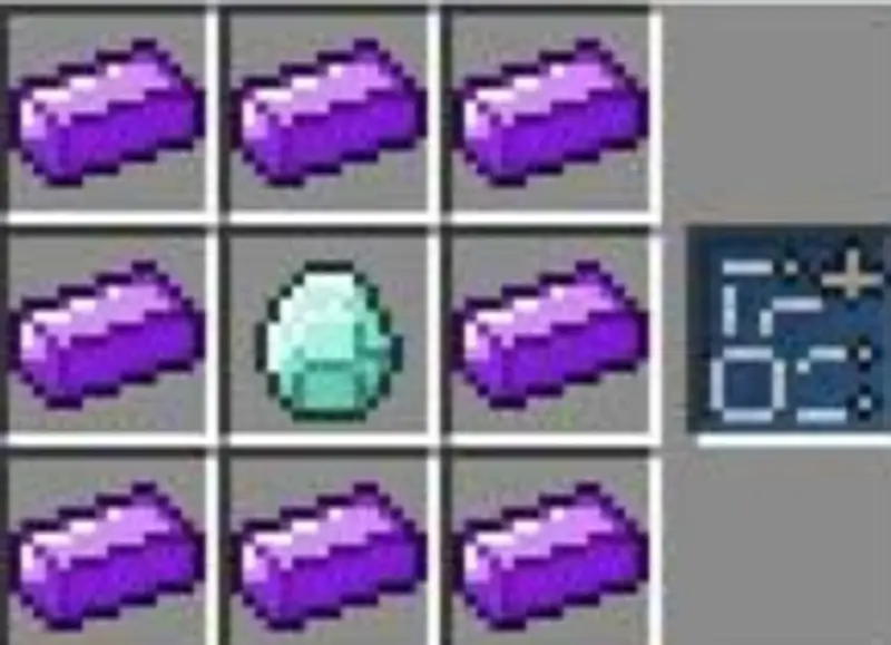 1.收集材料:9个紫晶锭和1个钻石,远古纯宝石,将紫晶和钻石摆放如下图所示,合成蓝图。