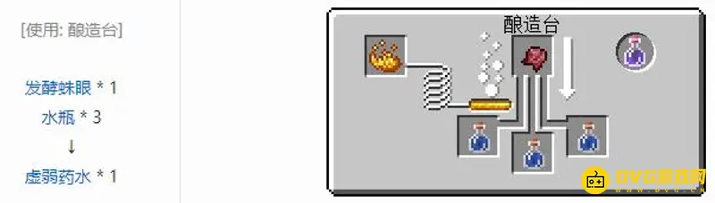 2,然后按照如图所示在上面放上发酵蛛眼,下面放三个水瓶,就可以合成虚弱药水了。