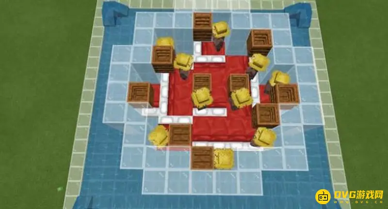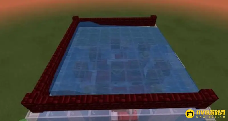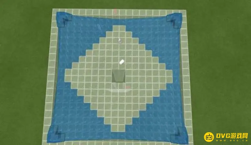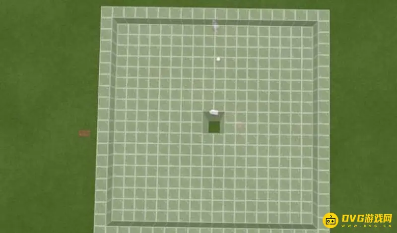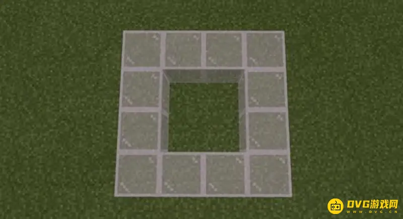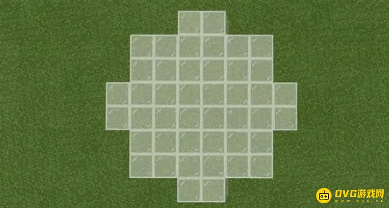 2、接着向外延伸9格,每边均为9格长(水流最远的距离是8格,最外一格做围墙),即制作成20×20的平台,中间空4个方块。然后将四周提高一格。