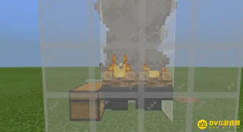 在地面放置一个大箱子,在通道中放上漏斗,漏斗的上面放上营火。注意漏斗的方向都要对着箱子。