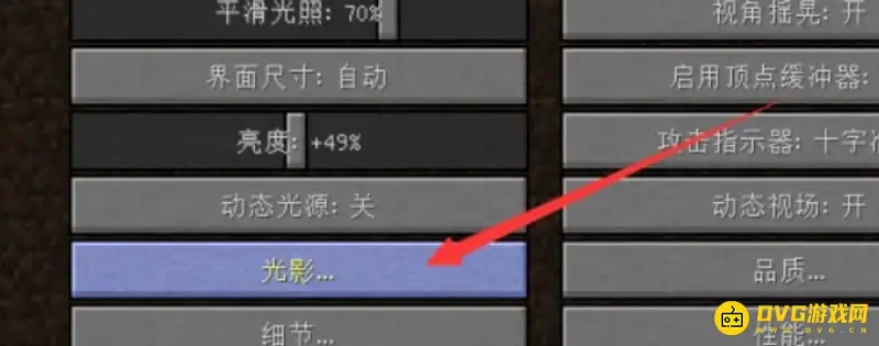 4、接着,我们需要在视频设置界面中找到“光影”选项卡,注意:只有安装了光影mod或者Optfine HD的小伙伴才会有此选项,如果未进行装载请先去装载。