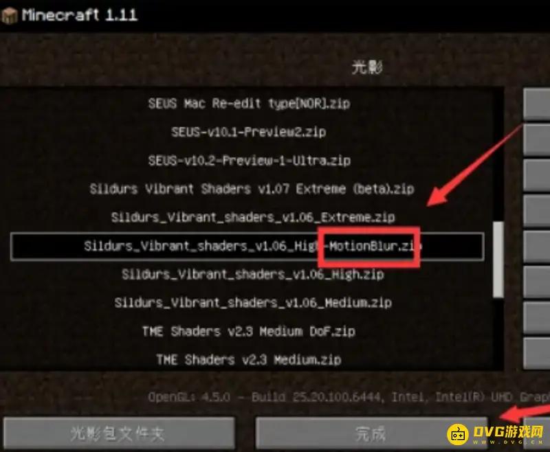5、我们在光影的选项栏中找到包含“Motion Blur”的选项,意思为“动态模糊”,点击选项再进入游戏即可发现游戏中添加了动态模糊的效果。