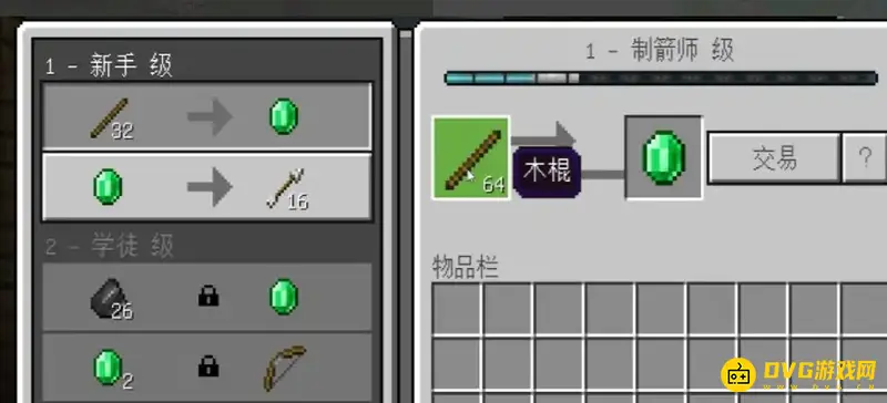 3、最后,找到之后点一下右键就会跟他交易,可以拿绿宝石换箭,可以拿木棍换绿宝石。