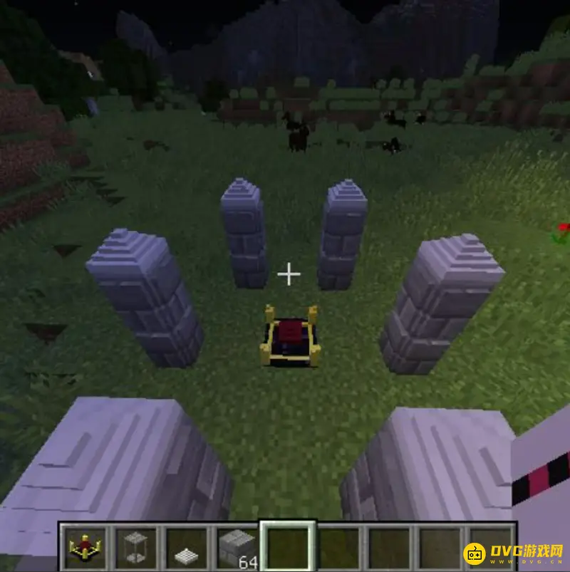 5.当我们成功合成药剂祭坛之后,还需继续准备以下物品:12个祭坛支柱,6个祭坛顶锥,12个石砖,并把它们按照下图的样子摆放(不要摆放错误)。