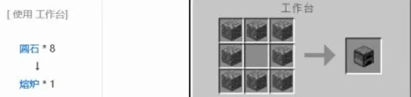 1.首先可以使用熔炉制作焦黑砖。熔炉的制作方法,只需要到野外采集8块石头,再在工具台中摆成固定形状即可。