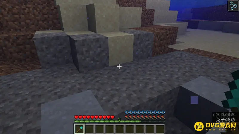 2、进入河内,找到沙砾,如图所示,然后将锹拿在手中,开始挖沙砾。