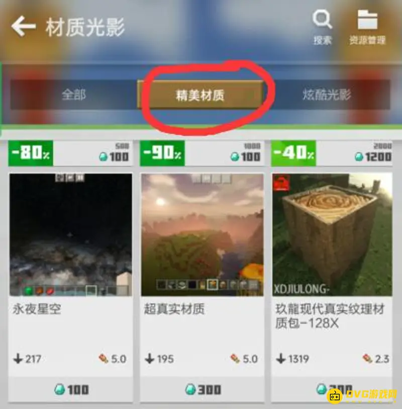 2,然后点击上方的精美材质,就可以在下方选择材质下载了。