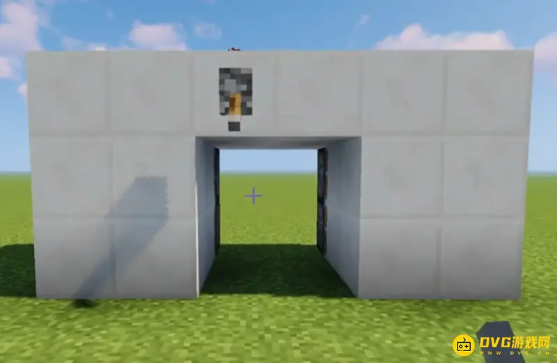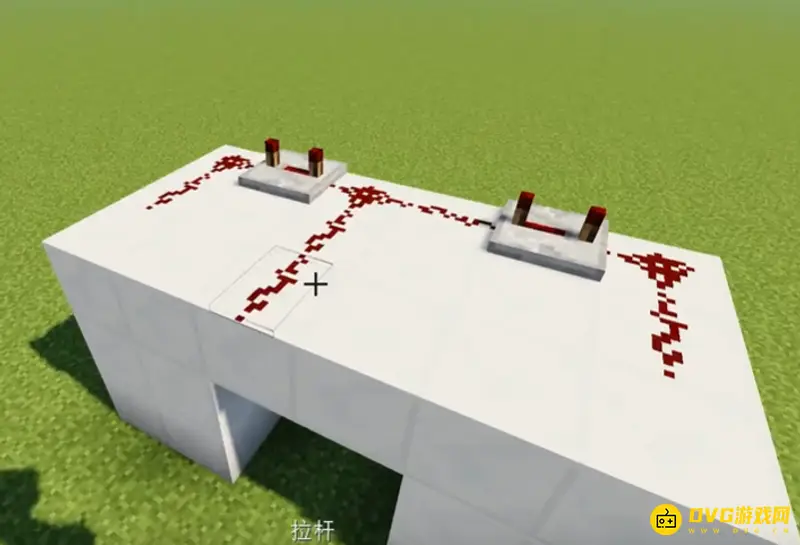 3、然后在石英块上面放置红石,再在两边放置红石中继器,调制三档。