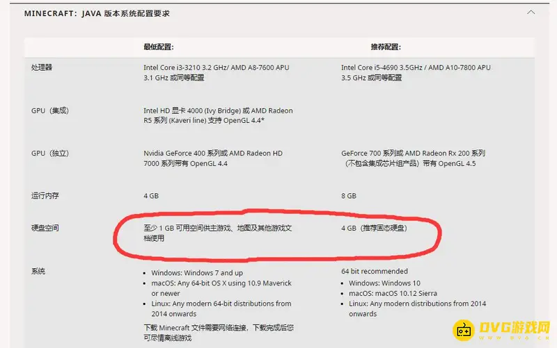 2,然后往下滑动,就可以找到配置列表,就会发现官方推荐最低为1G,推荐为4G。