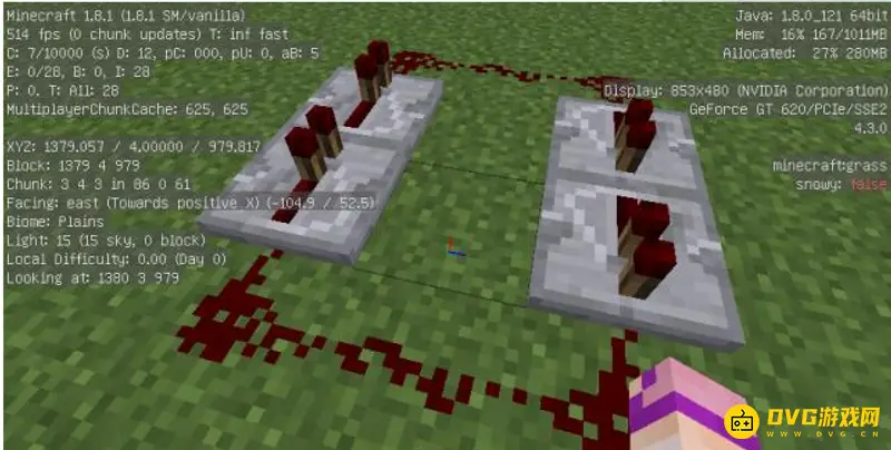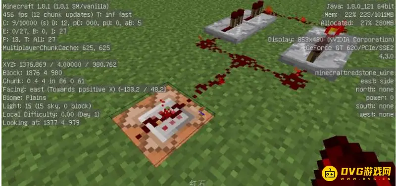 1.做一个无限红石脉冲【如图摆放然后放下红石火把马上再打掉红石火把】: