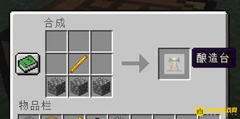 1、首先在我的世界中用烈焰棒和圆石合成一个酿造台。
