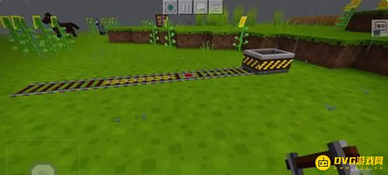 2.只有动力铁轨还不行,还要在铁轨边上加一把红石火把,这样就可以了。