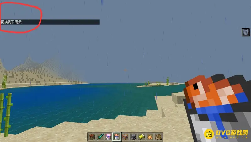 2,然后输出指令,就可以发现已经切换成雨天了,所以我的世界雨天指令是/weather rain。
