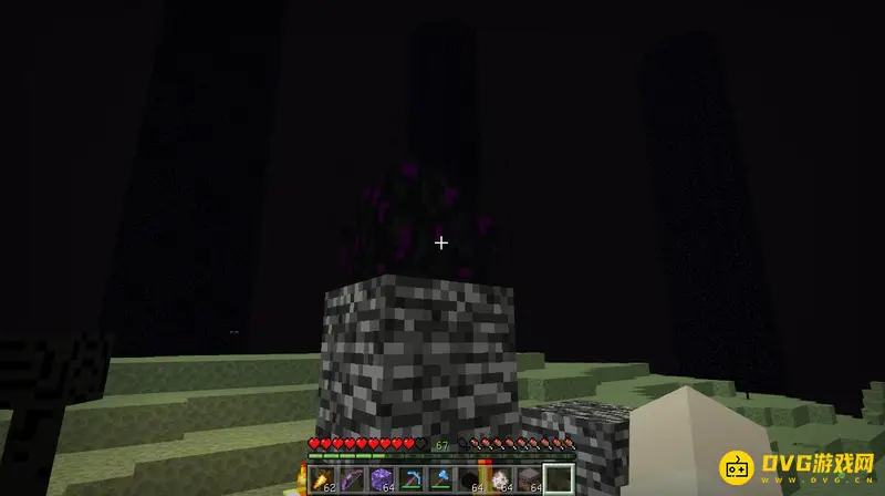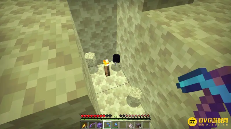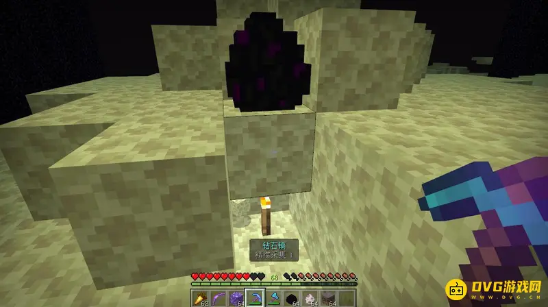 2,接着我们在龙蛋下方放一根火把,然后把中间的方块挖掉。