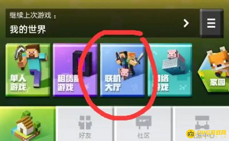 1,首先我们进入我的世界启动器,点击下方的联机大厅。